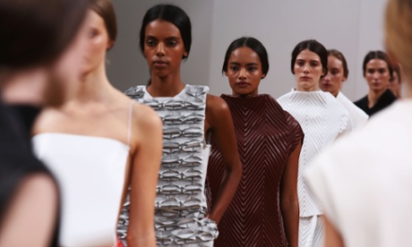 Other shows on Saturday echoed Anderson's wipe-clean aesthetic. Sister by Sibling in the morning referenced Tupperware parties, while Antipodium's presentation was inspired by the sterile environment of shops, with models standing in mocked-up shop windows. The assured show for high street brand Whistles – in Heron Tower – was also immaculate with a colour palate of crisp pastels and a woven fabric that chief executive Jane Shepherdson described as "futuristic raffia".